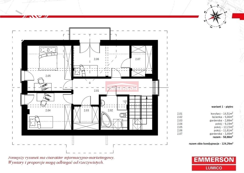 korytarz - 14,51m2 łazienka - 5,00m2 garderoba - 2,88m2 pokój -
