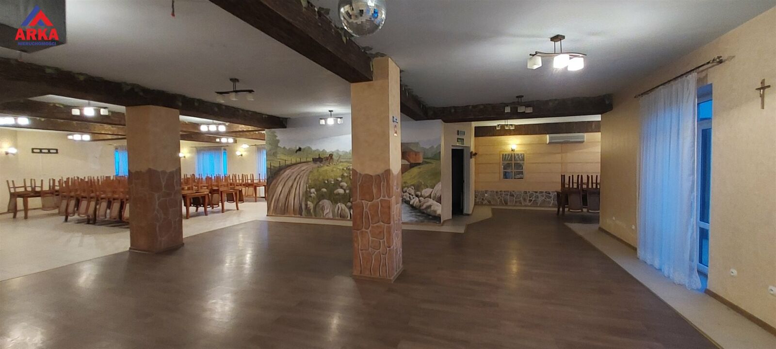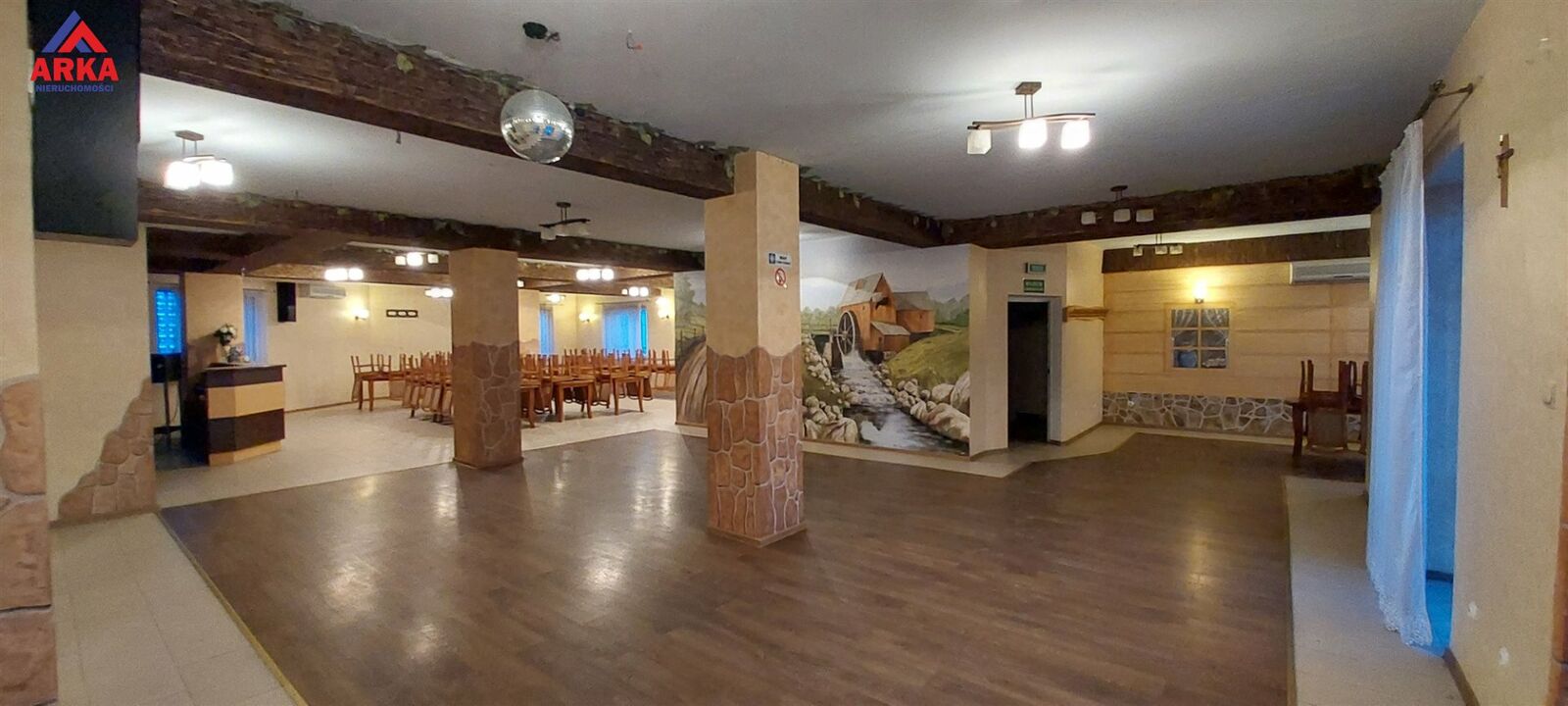 Budynek z przeznaczeniem pod dom weselny na około 120 osób , z zapleczem noclegowym oraz pełnym wyposażeniem gastronomicznym.